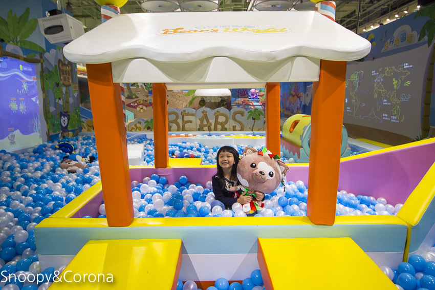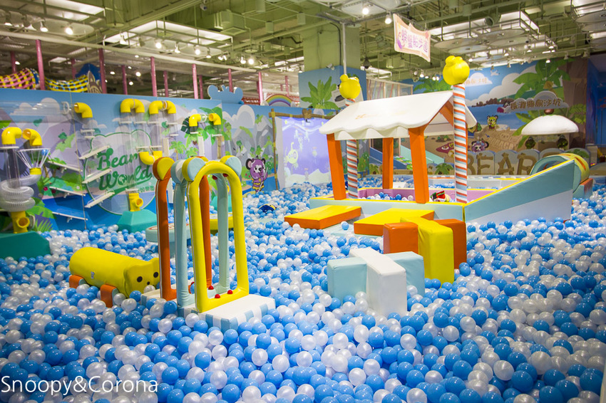【貝兒絲樂園菲舞南洋主題館】的沙坑採用的是圓潤的小木球,