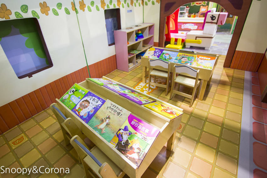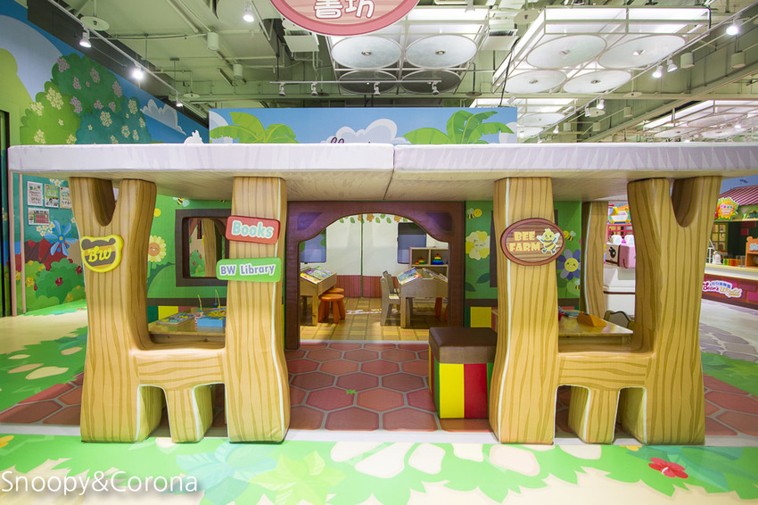 蜂蜜農場裡設置了童書閱讀區,桌上還有一些益智玩具與桌遊,