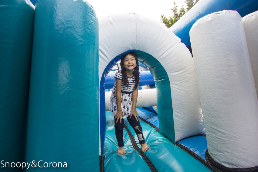 還有小孩最愛的大型氣墊免費玩,可樂娜看到好開心脫了鞋就往上爬,