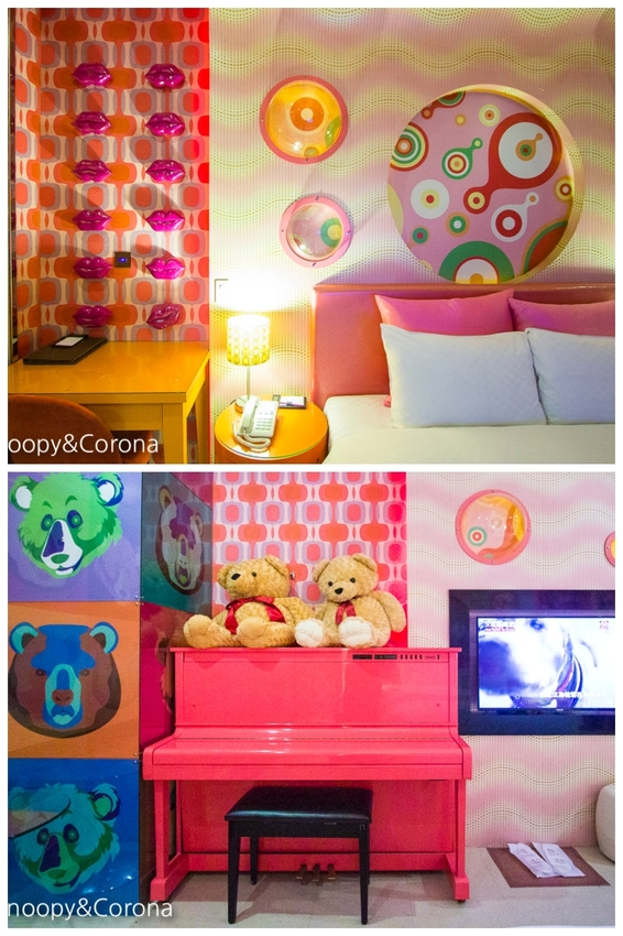 以小熊為主題的客房,粉嫩的色調帶有可愛的普普風,