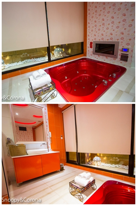 寬敞的浴室設置了幻彩珍珠雙人按摩浴缸、法式維琪浴和遠紅外線烤箱,
