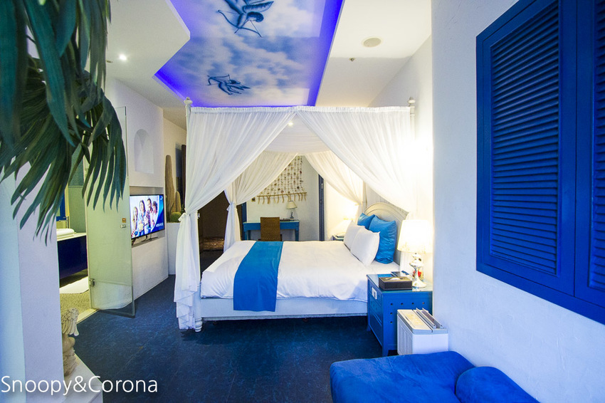 騎士房型大約13-16坪,色調以藍白色為主、愛神邱比特為元素,