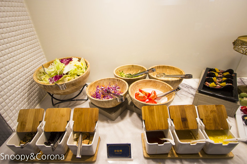 主廚嚴選的涼菜、生菜沙拉、蜜香地瓜、吐司與麵包與水果
