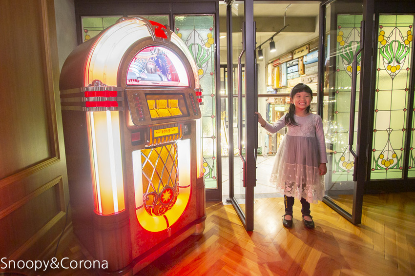 義大利鑲嵌彩色玻璃窗搭配老式點唱機好有fu