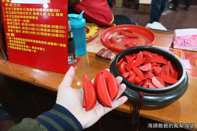 可擲杯3次,若有1次聖杯即可領取財寶袋(內有發財錢跟平安財)