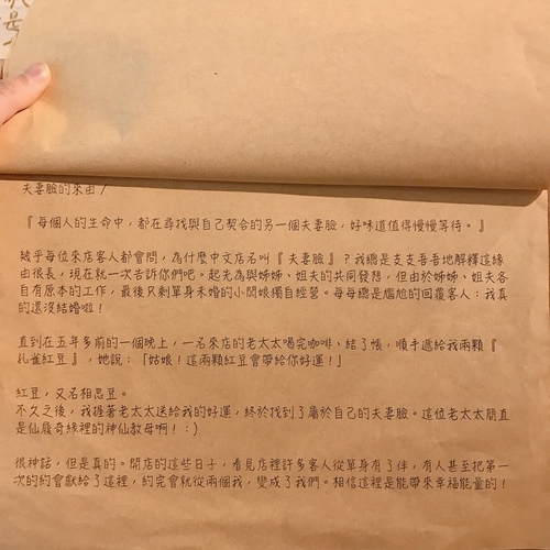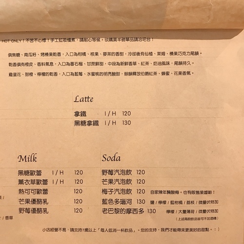 室內裝潢頗家居溫馨感,發現牆上還貼密密麻麻的文字,仔細一瞧,竟然是幾款手作甜點的闆娘發想和動人故事