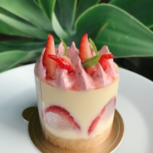 卡士達醬甜度的比例調和適中,搭配淺粉色的莓果甘那許,口感潤滑之餘,還能感受到新鮮草莓的酸甜滋味