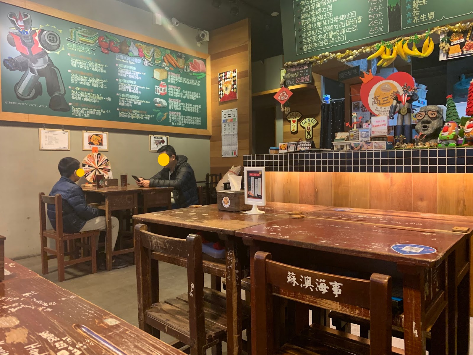 等候餐點之餘,好好端詳店內五花八門的擺設,牆上還有造型眼鏡、假髮道具可以借用拍照,意圖使人無法專心吃早餐,讓平凡的吃早餐也可以很有趣。