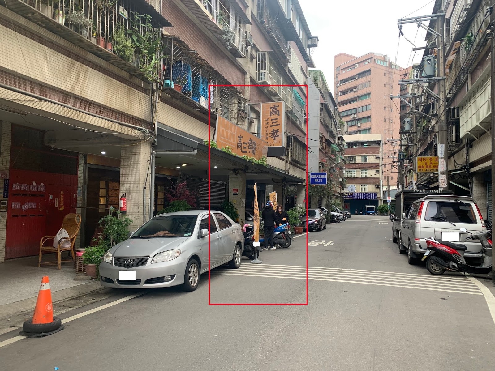 店家就位在SOGO中壢店對面、威尼斯影城後方的巷弄間,店門口擺有招牌橘色旗子相當顯眼。
