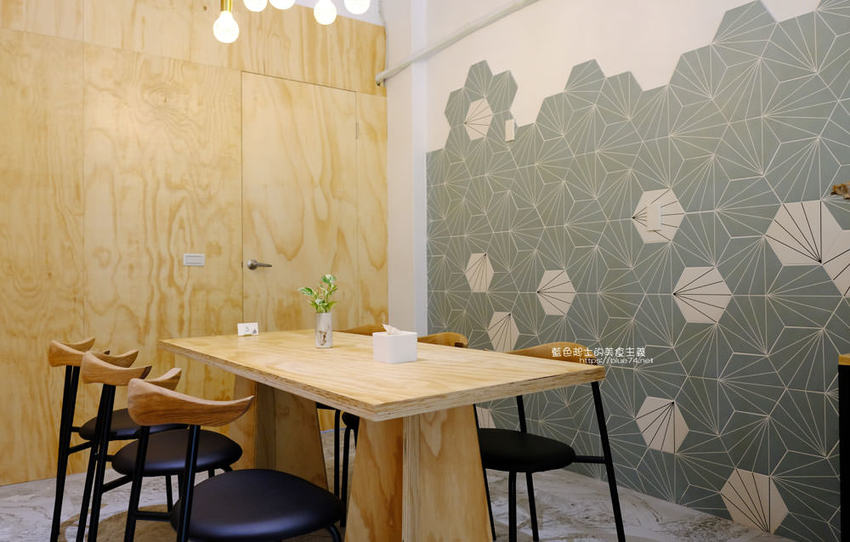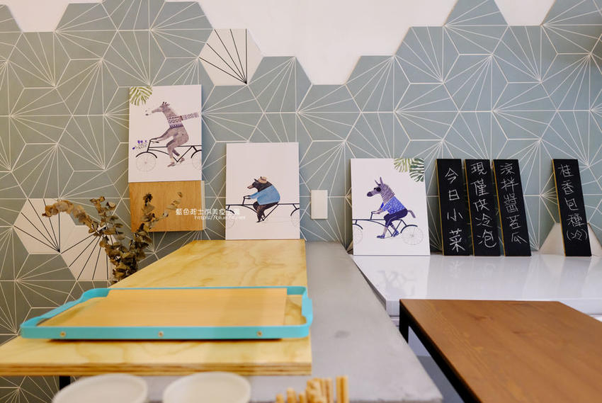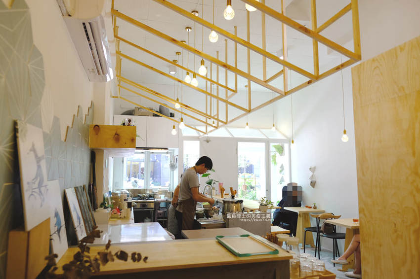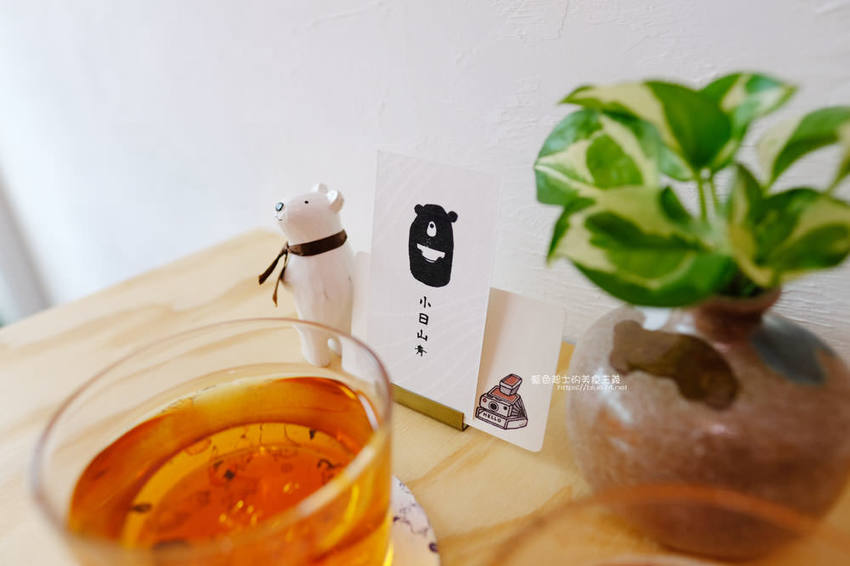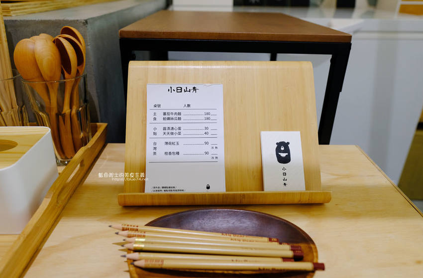 台中南屯區,文青風的小日山青,白色系簡約外觀,可愛黑熊捧著麵的logo,裡面座位不多但感覺是舒服的空間。