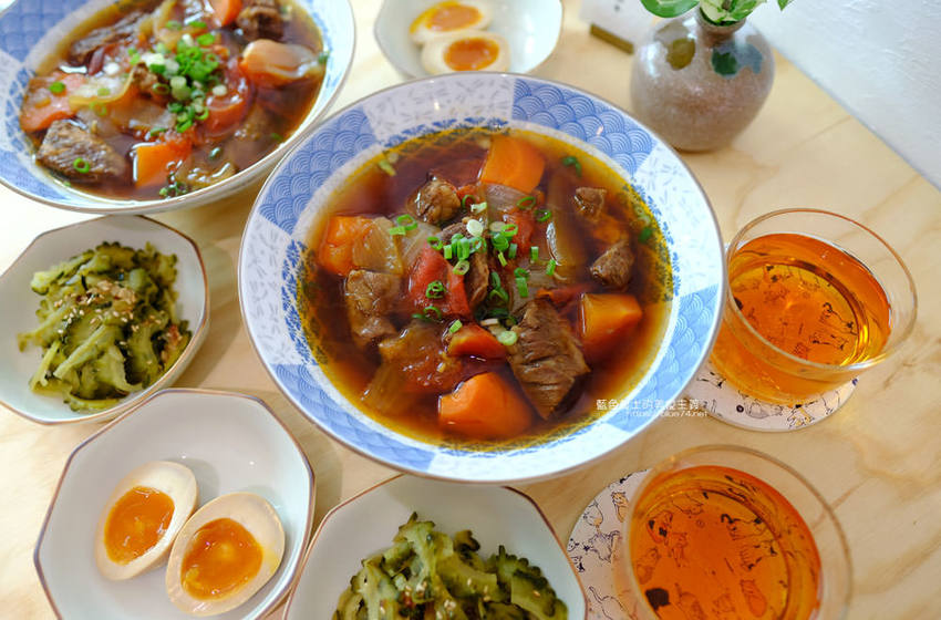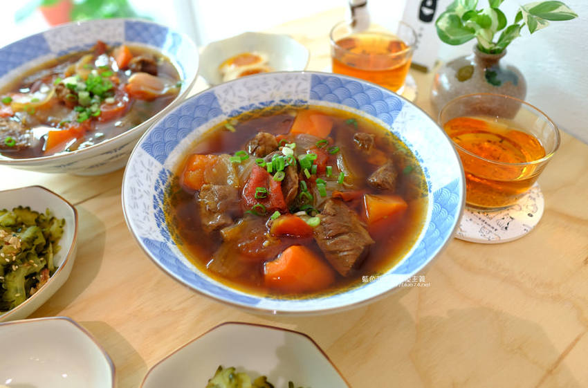 使用大量紅蘿蔔、洋蔥和番茄熬製湯頭,喝起來清甜不濃厚,甜度部分店家有再微調一些,所以對我來說有稍甜一點點。