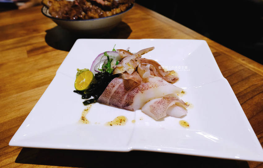 有淋上芥末和風醬,所以會帶有微辣感,比較大人味的松阪豬,邊邊烤的焦香,松阪豬有彈性的肉質,也滿下飯的。