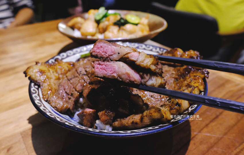 看不到白飯的牛排飯,一上桌便聞到香氣,切面帶有粉嫩色澤,切成細條狀好夾好吃,略有筋性,但不礙事,不影響太多的口感,加上牛排的份量真是多,很有誠意。