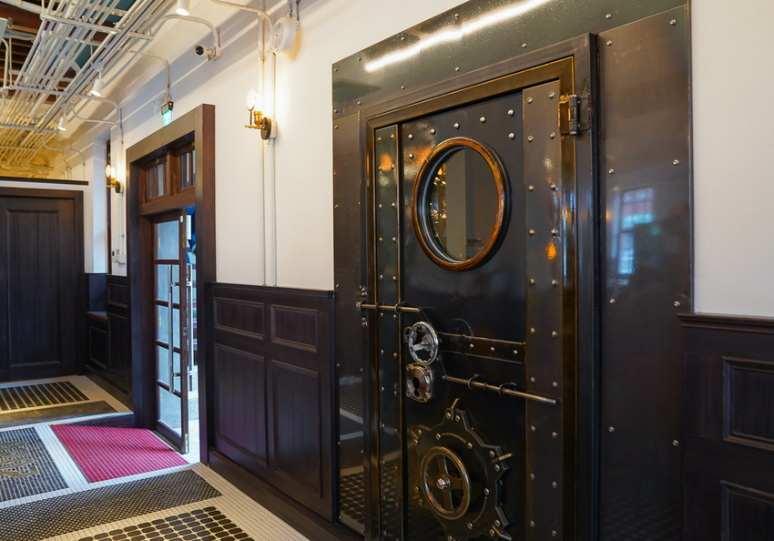 古蹟咖啡店,可以看到保留舊時的銀行遺跡,