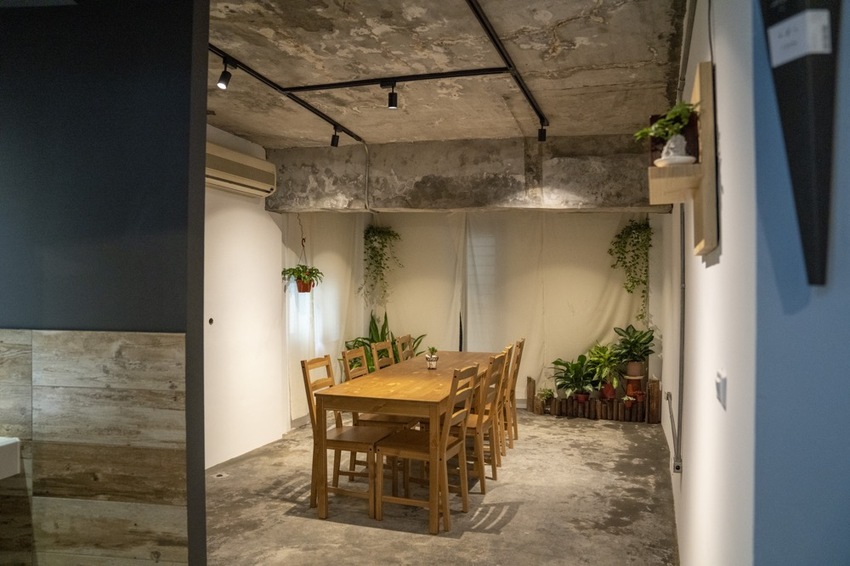 眼前的水藍色牆面、深棕皮革沙發及木頭桌椅,每一處角落混搭出另類簡約的工業風,一旁獨立包廂空間還可以盡情享受不吵鬧也不壅擠的下午時光