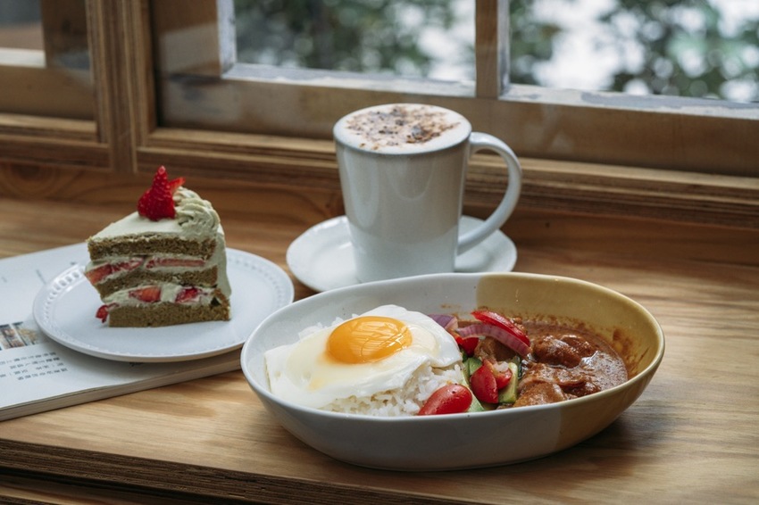 一上桌就撲鼻而來的咖哩香氣,上頭半熟蛋顯得特別可口,香濃咖哩帶點辛辣與米粒充分攪拌一起,一口吃下,簡單富有層次感,搭配一旁軟嫩豬肉,會讓人停不下嘴!