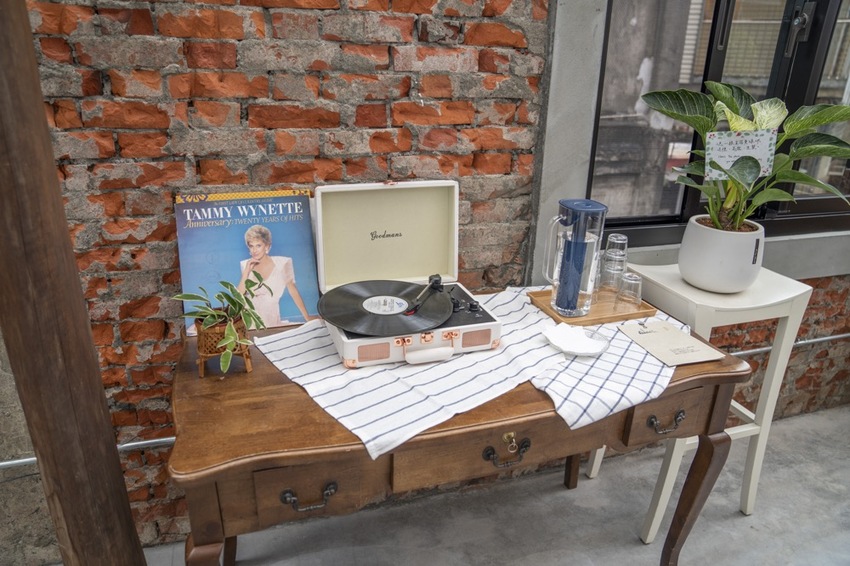鑲在牆面內老舊紅磚瓦、角落處的黑膠唱片,店裡的一景一物充滿濃濃懷舊感,