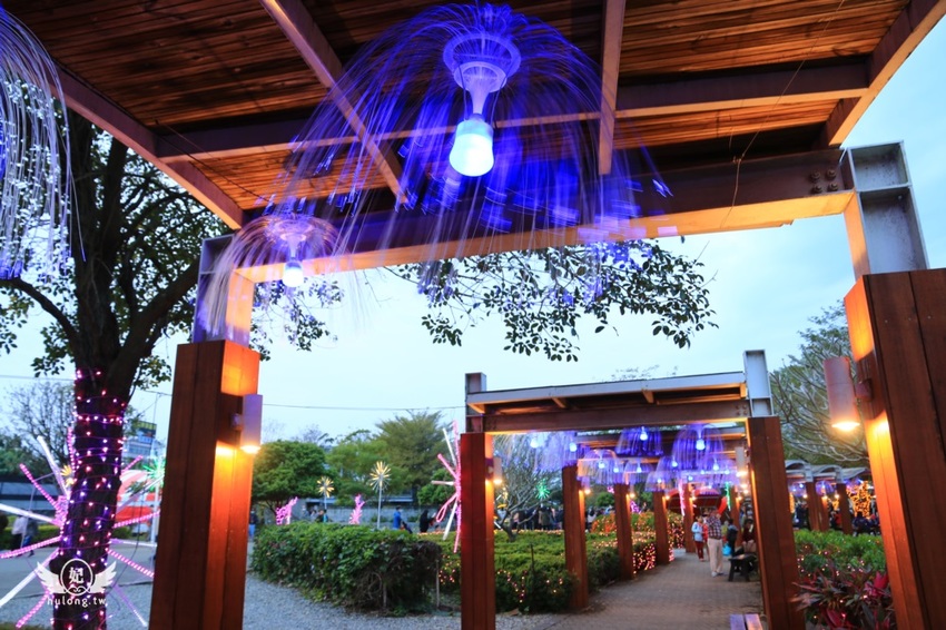 休息涼亭也裝飾了不同造型的燈景,到了夜晚瞬間化身夢幻場景了