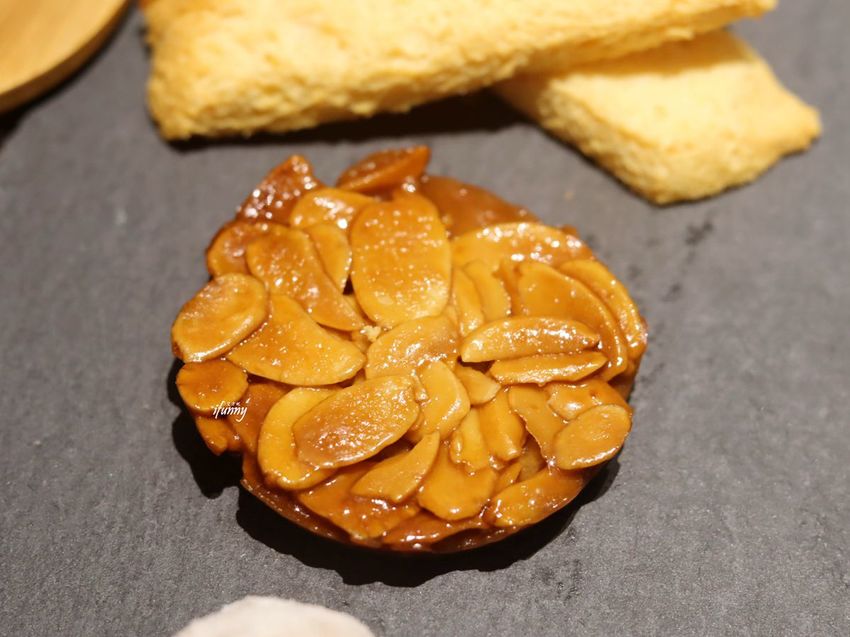 杏仁餅乾,滿滿的杏仁片,以焦糖黏附在塔餅上,一咬下也不黏牙,滿口生香。