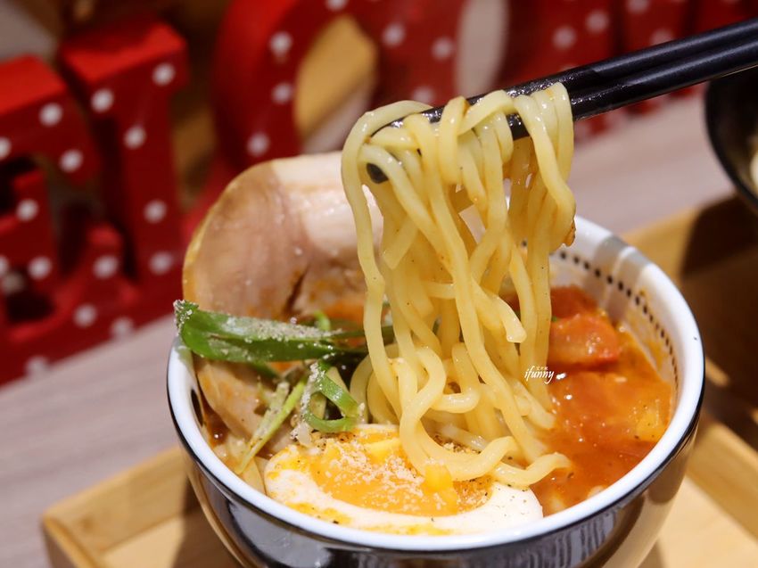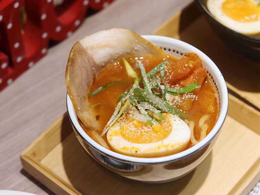 和風義式蕃茄拉麵,一上桌滿是起司香氣撲鼻。