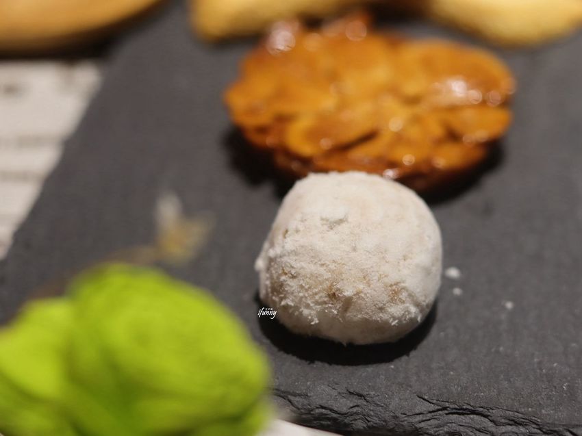 雪球餅乾,灑上糖粉後像極了在雪地中的雪球而得名的雪球餅乾。加入了杏仁口感酥脆。