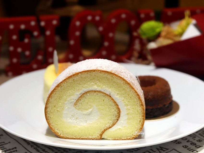 瑞士捲的蛋糕體,帶著討喜的微Q感,鮮奶油很細緻,在口中化成如雲朵般地輕盈。