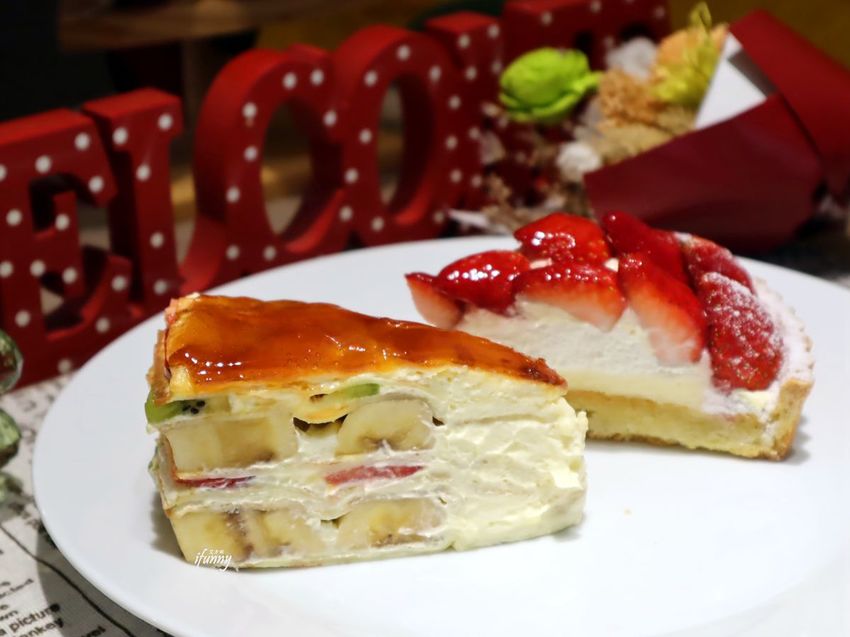 先來說說這個內層的水果,其實曾吃過的水果千層,裡頭的水果有時會使用稍熟一點的水果,所以吃來水果會跟蛋皮是接近的口感。但徹思叔叔的這個水果千層卻是極新鮮,無論是香蕉、奇異果或草莓,都還保有水果本身的Q勁及脆感,這一點超加分的!