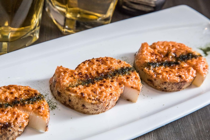 厚切的日本山藥抹上一層明太子炙燒,山藥經過加熱將甜度釋放,入口帶有山藥特有的黏稠感及脆度,上層的明太子醬鮮香誘人,搭配爽脆山藥,絕配!