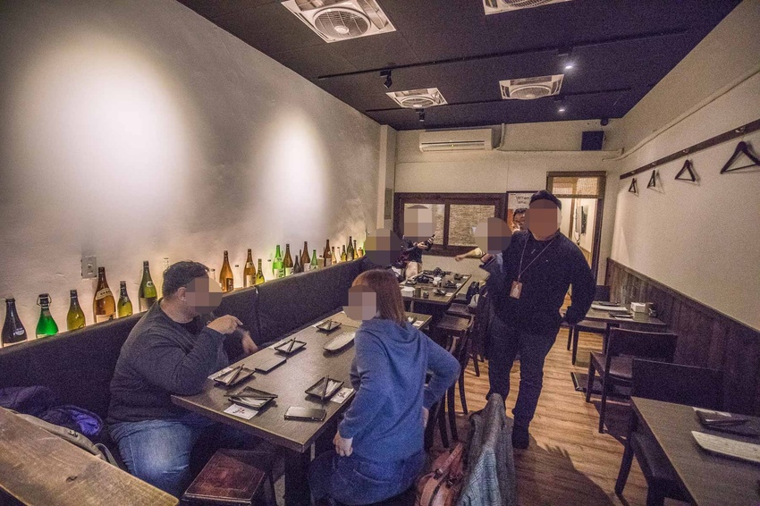 手串本舖串燒店內的風格是走極簡風的日式典雅風格設計,用餐區域分為一二樓,一樓除了門口處有一張四人桌外,其他的位置都是吧檯前的座位,吧檯區可以就近看到職人師傅們料理燒烤的技藝