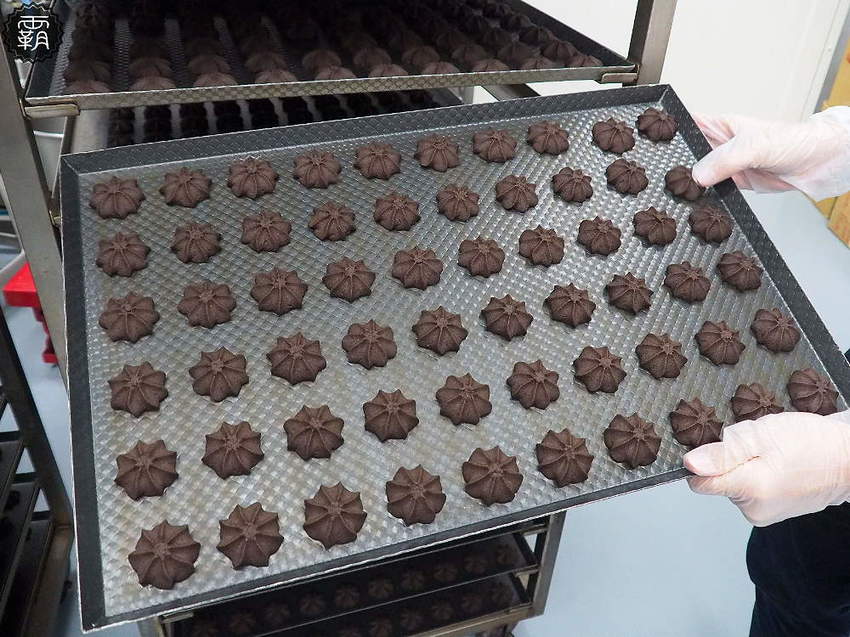 這天做的口味是巧克力可可亞口味,一顆顆曲奇餅乾整齊劃一的在烤盤上,每個都是很漂亮的星芒形狀。