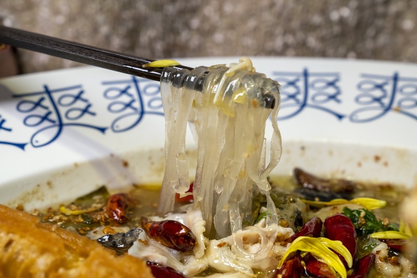 在酸菜魚鍋底原本就有滿滿的冬粉,菜單上也可以再加點寬冬粉,可以依照個人喜好來決定要不要加量,吸飽湯汁的冬粉也是這道菜必吃之一,另外一個吸湯高手「老油條」也不遑多讓,把老油條泡進湯裡再一口咬下去,爽感不輸冬粉呀!