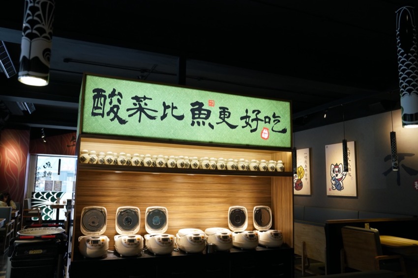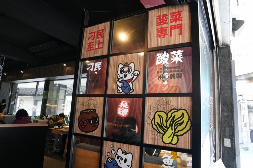 從大門口就看見到處都是「刁民」跟「酸民」的滿版字樣,不管是口味刁鑽的「刁民」,還是愛吃酸的「酸民」,店家掛保證一定能滿足到你!走進店內可以看到許多招牌刁民貓的可愛圖樣,每一張座位上放還有可愛的魚旗燈飾,在店內直接掛上「酸菜比魚還好吃」,可見他們家對於自己的酸菜料理多有自信!