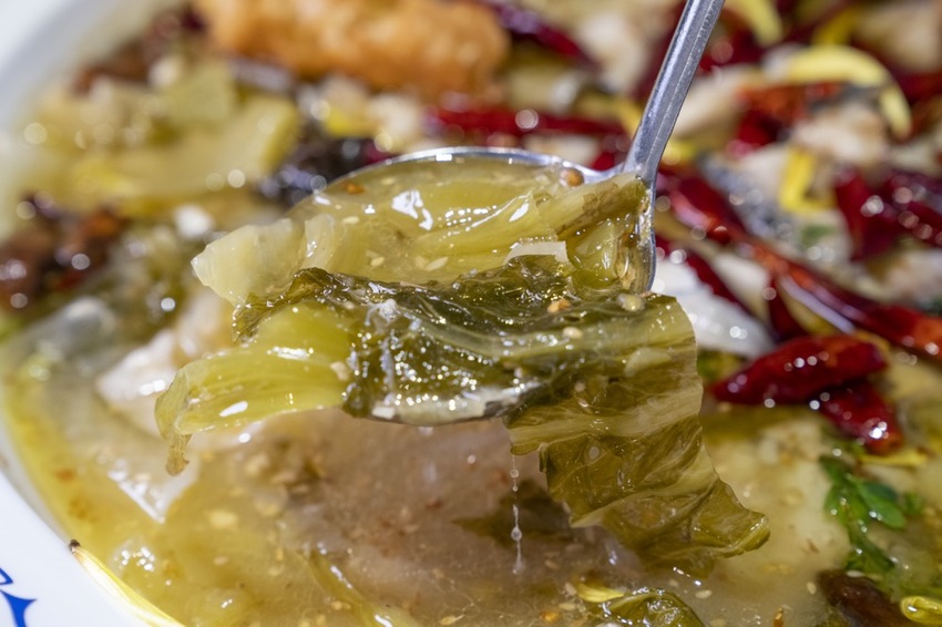 酸菜魚當然少不了主角「酸菜」啦!果然跟店家招牌寫得一樣「酸菜比魚還好吃」,熬到軟爛的酸菜夾著魚肉鮮甜味,又帶點椒麻的微辣感,完全讓這道菜注入靈魂,愛吃酸菜的人一定會愛!