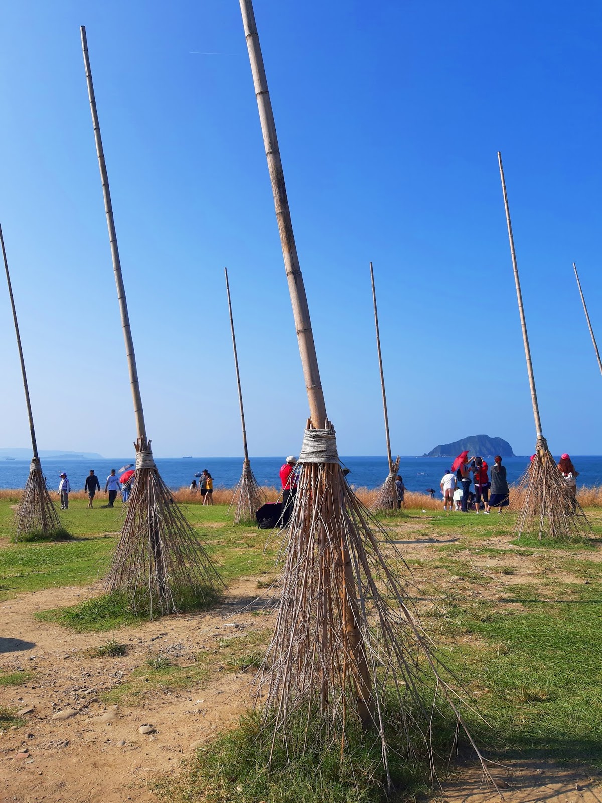 飛天掃帚距離鸚鵡螺溜滑梯不遠處,登高望遠後,飛天掃帚就不那麼壯觀了,但看到一堆掃帚在草地中卻變得有趣。