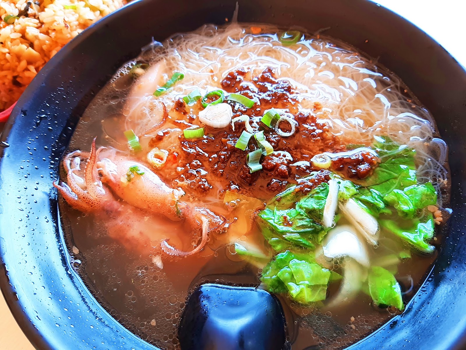 活跳小卷米粉,一碗90元,份量為正常一碗麵的大小,湯頭還行,這碗小卷米粉也是我們一致認為這頓最好吃的一樣,喜歡吃小卷以及米粉的朋友,不要考慮,就選這道吧。
