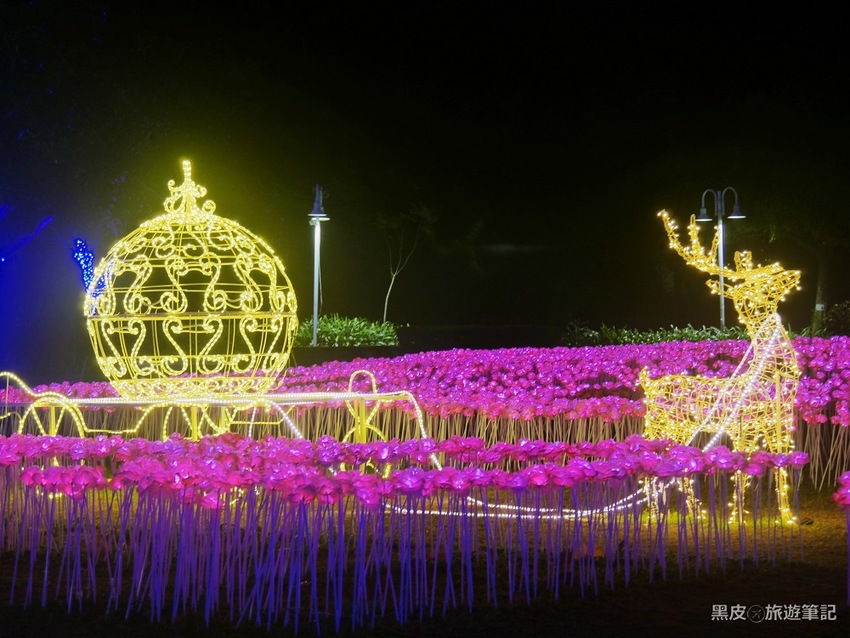 沿途走過的花草樹木,皆被裝飾上華麗亮眼的外衣,等到天色暗下,更是引人注目。