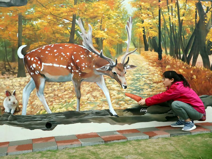 接著是3D彩繪牆區,也是需要排隊拍照的地方。有著四季主題的繪牆,這是春天的草原。