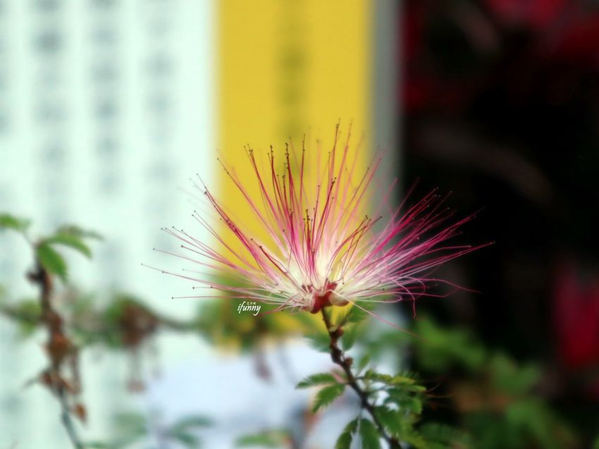 因為鶯歌永吉公園是以「花朵樂園」為主題,因此公園裡是炮仗花為大宗之外,也有其他的花種。像這個是合歡花。
