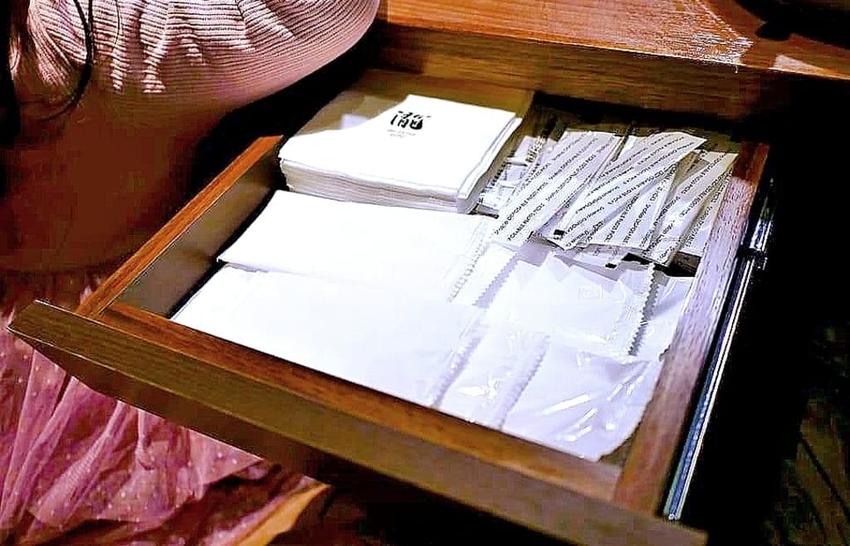 每ㄧ桌的座位兩側抽屜裡. 皆貼心提供濕紙巾.餐巾紙.牙線可自取使用