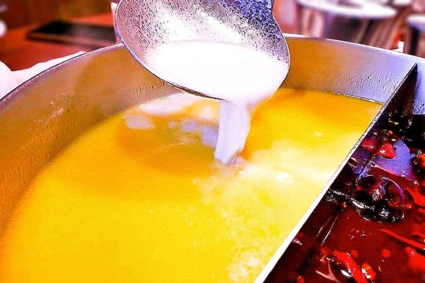 起司牛奶湯底湯頭濃郁.起司在鍋內慢慢的溶化.有著香醇的奶香味. 適合加入蔬菜及海鮮食材下鍋煮.可增加食材鮮味與甜度口感.香濃又入味