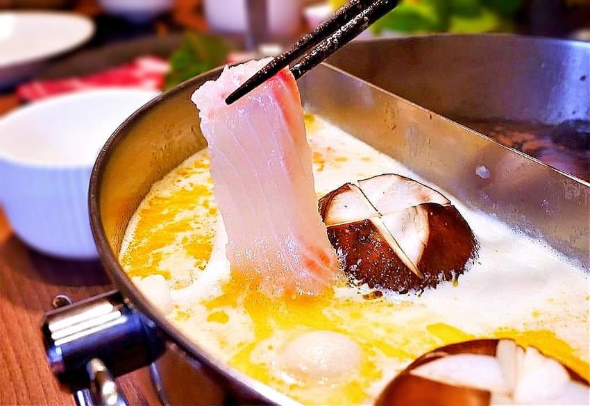 新鮮鯛魚片肉質富有彈性,在鍋中涮煮一下就能享用