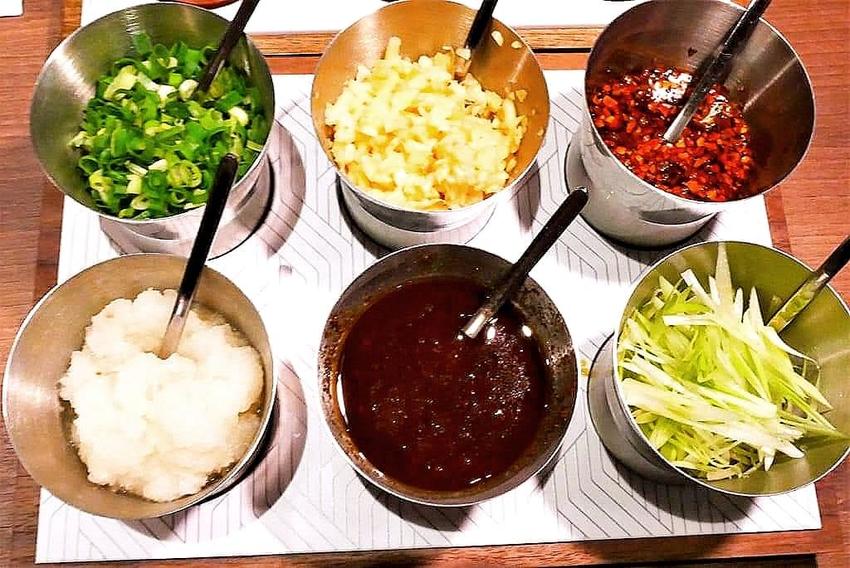 為了不佔桌上空間.待鍋物上桌前.服務生會將調味盤拿走.所以自己想要的調味料要先取