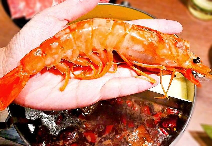一隻一隻夾入鍋煮.光是一隻天使紅蝦的體積就佔了超大空間. 開啟蝦蝦大餐模式!