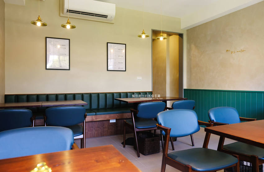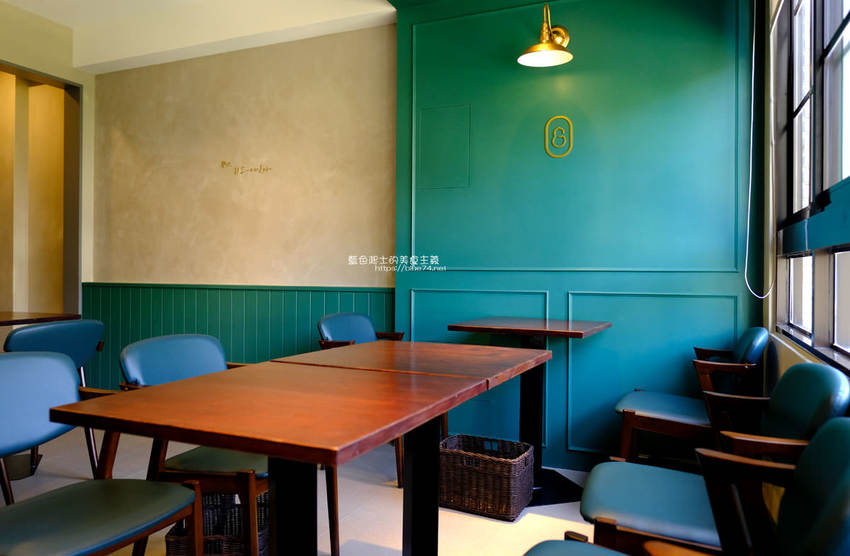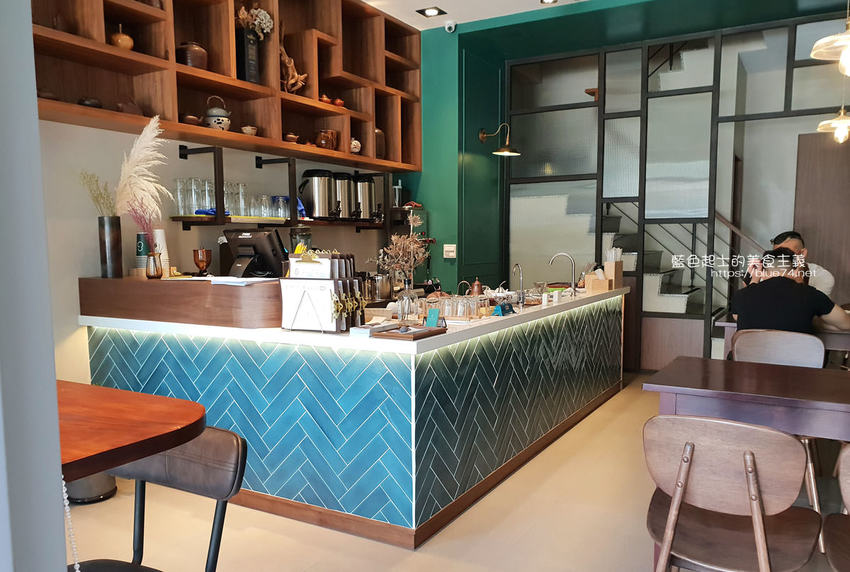 有質感的藍綠色系裝潢,Logo以葫蘆墩為靈感,所以是葫蘆造型,很有關聯性和意義。