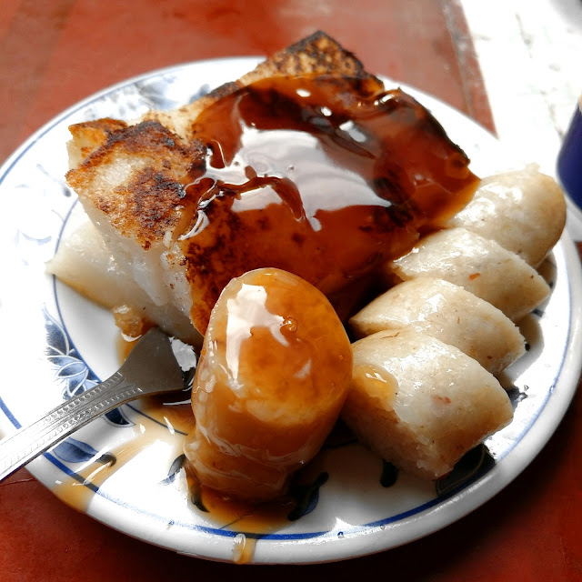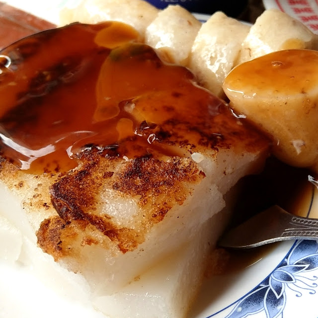 蘿蔔糕屬軟軟的綿密口感,我覺得還不錯,但一樣問題,醬料真的給的很大器,食物原味都被覆蓋了。