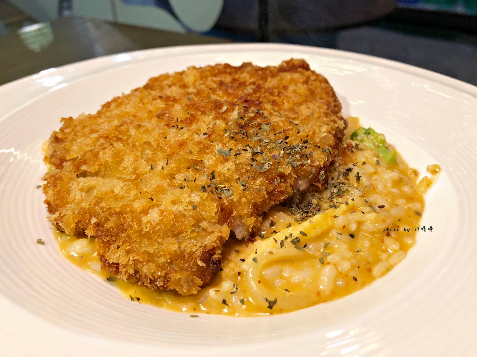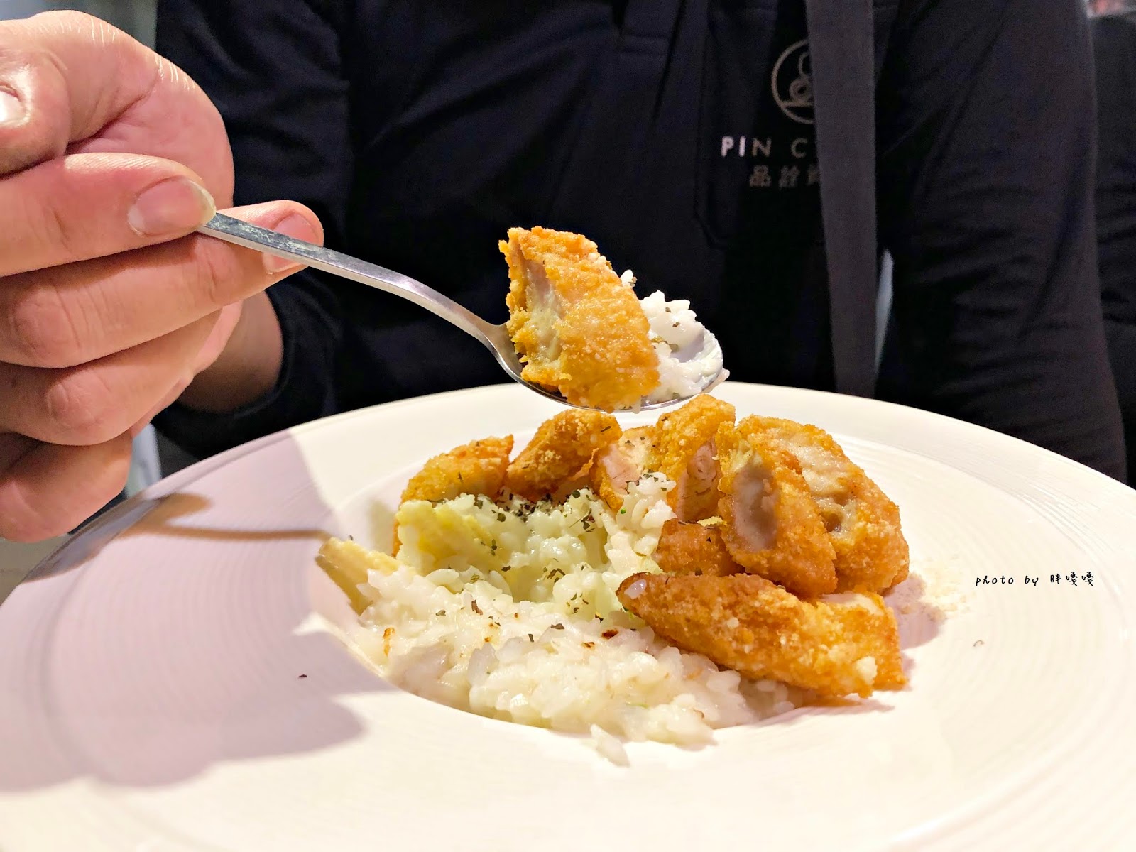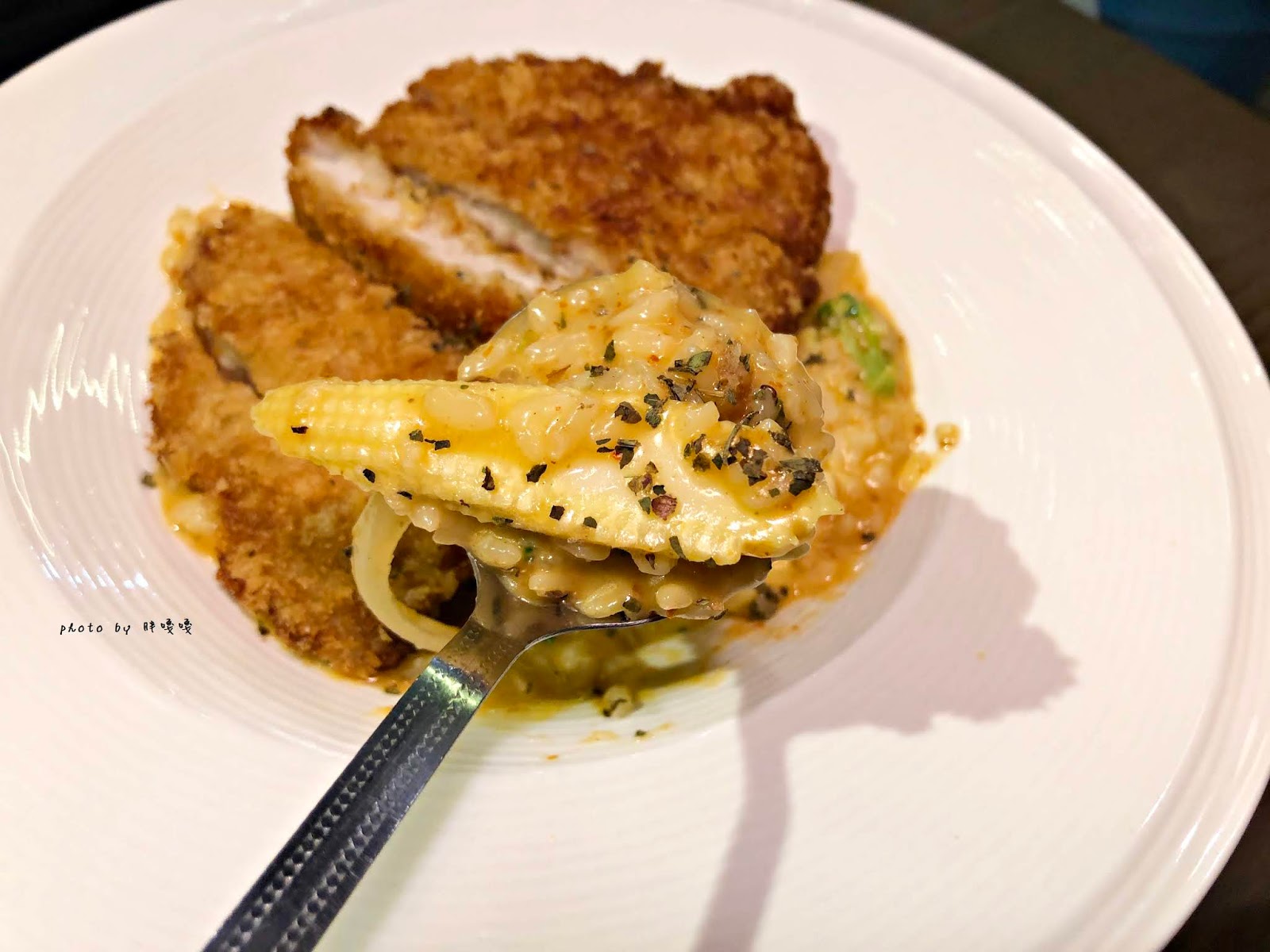 底層的白醬燉飯口味很淡