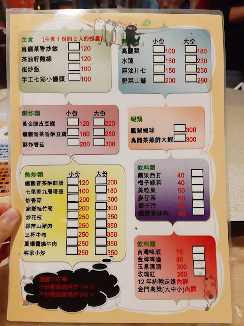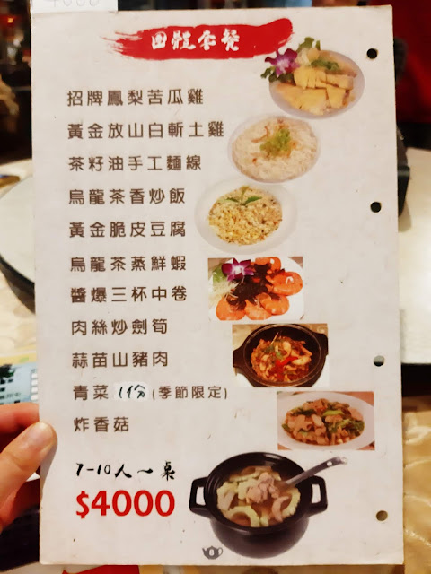 手工七彩小饅頭/蒜苗山豬肉/鐵觀音茶香酥豆腐/家鄉桂竹筍/烏龍茶香炒飯/茶油籽麵線/鳳梨苦瓜雞湯(大)/水蓮/麻油川七