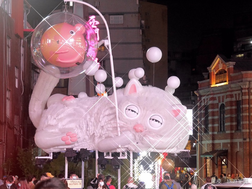 2020元宵燈會應該是黑皮很勤勞到各縣市賞最多燈的一年,新北廣行宮、彰化溪州公園、台中文心公園、桃園中壢燈會黑皮都去過了,老實說再美的景色也有看到膩的一天,但友人一直跟黑皮說一定要看台北西門町的雙主燈,聽說很厲害,黑皮真的興致缺缺,但卻還是被拖著去,這一次黑皮是於2/6號是點燈的時候前往,正要前往西門町紅樓的路上,遠遠就看到了約9尺的高在那邊,黑皮瞬間被圈粉