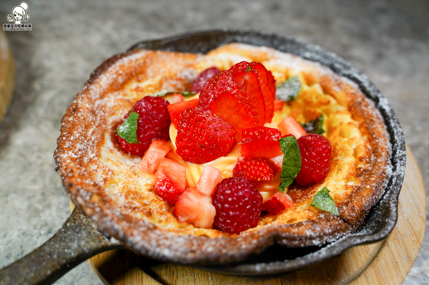 好療癒的鑄鐵鍋鬆餅,濕潤度口感剛剛好,迸出草莓酸甜果香滋味