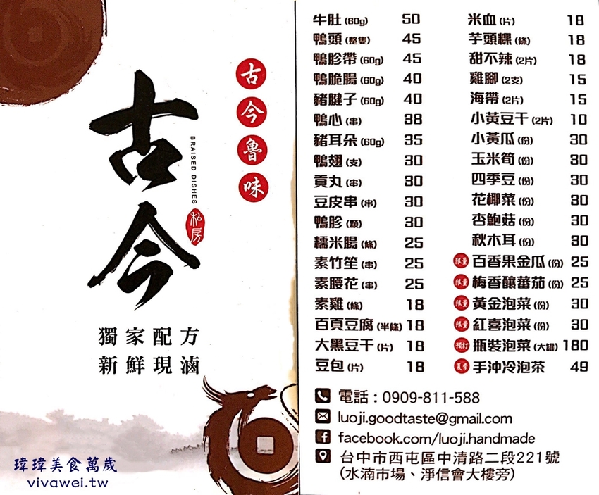 ▲這是「羅記知味-古今魯味」的完整菜單,販售的品項超多,價格也很透明(實際販售品項與價格,以店家現場公告為主)。
